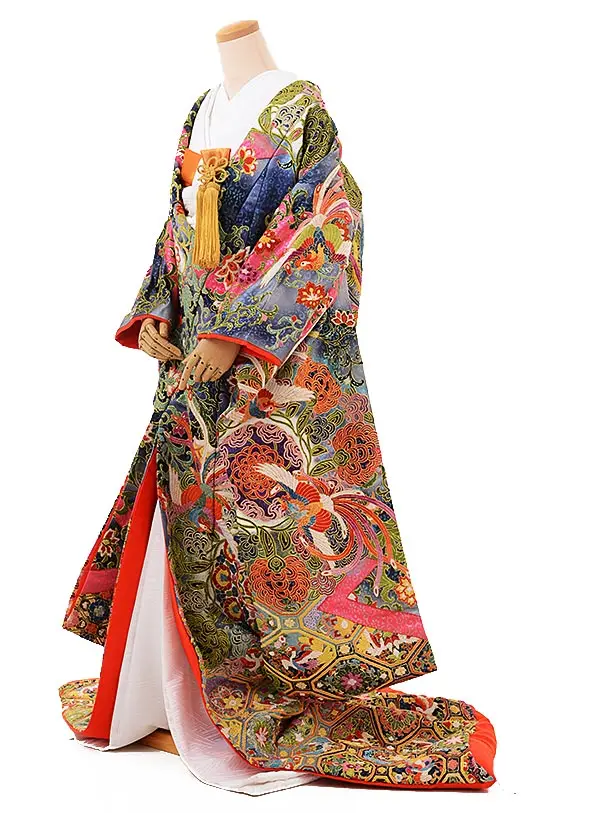 色打掛レンタルE191 紺地 さがら刺繍 鳳凰