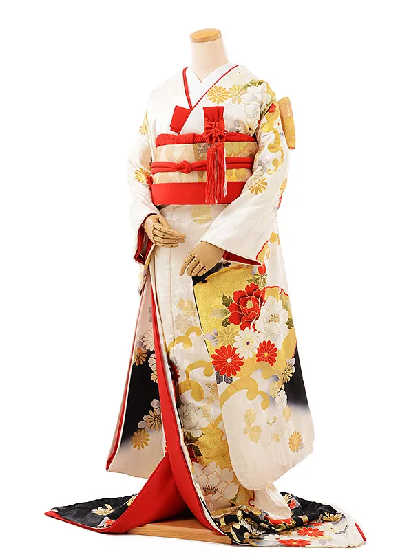 黒引振袖レンタル 365白地黒ぼかし波に雪輪花