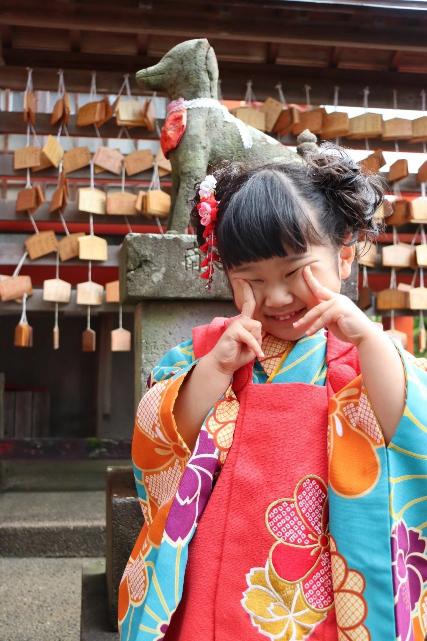 このたびは七五三衣裳をレンタルいただき、ありがとうございます。色鮮やかな被布姿で元気いっぱいにポーズをとるお子さまの笑顔がとても可愛らしく、拝見して心が温かくなりました。大切な記念日に当店の衣裳を選んでいただけて嬉しく思います。