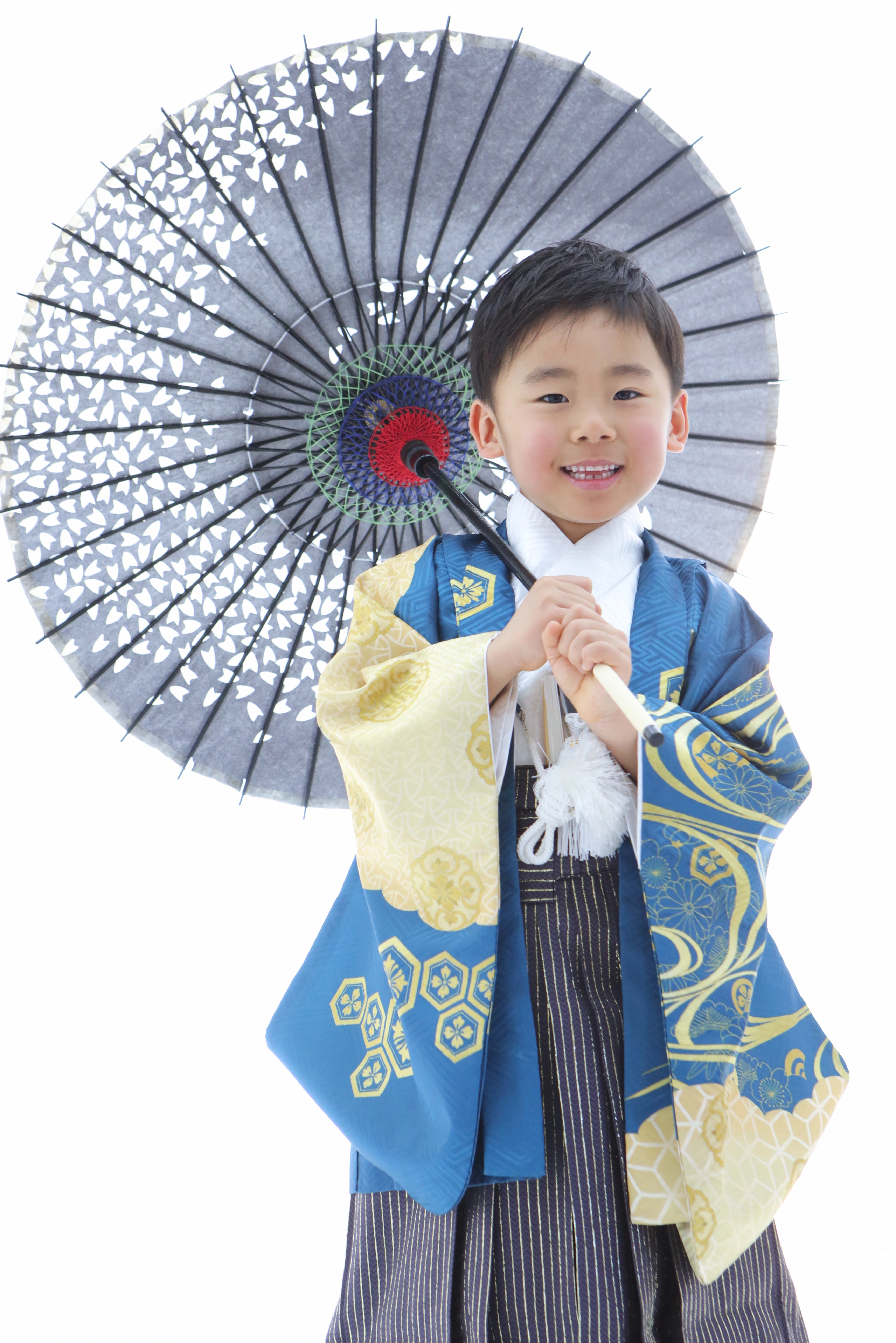 かんたん七五三(5歳男袴)X316 ブルーグリーン流水に鳥×ラメストライプ