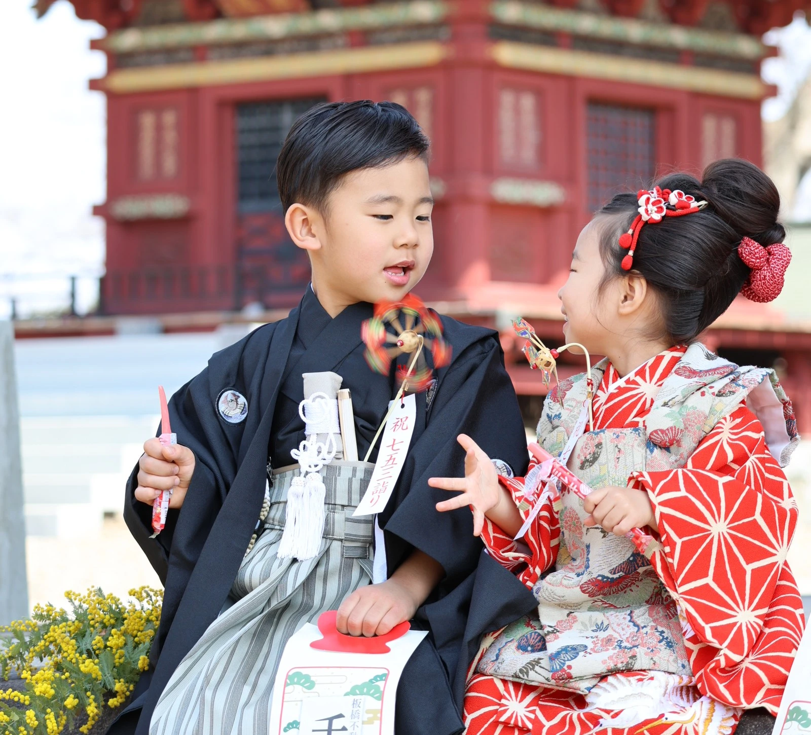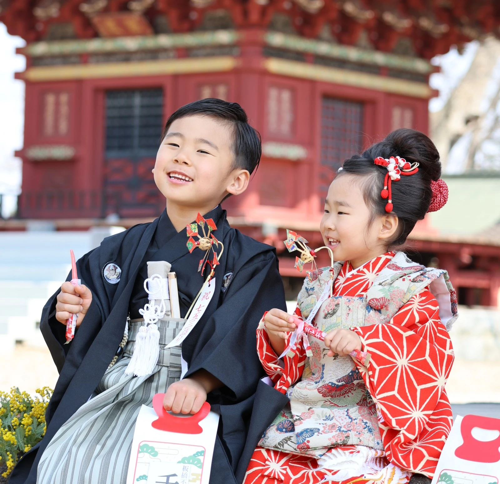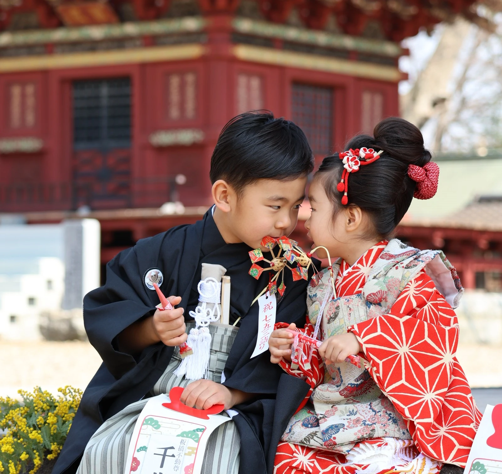 七五三お詣りは昔ながらのレトロ調お着物で! とっても楽しそうで仲良くていい写真ばかりです! 兄妹ずっと仲良く…(^^) ありがとうございました!