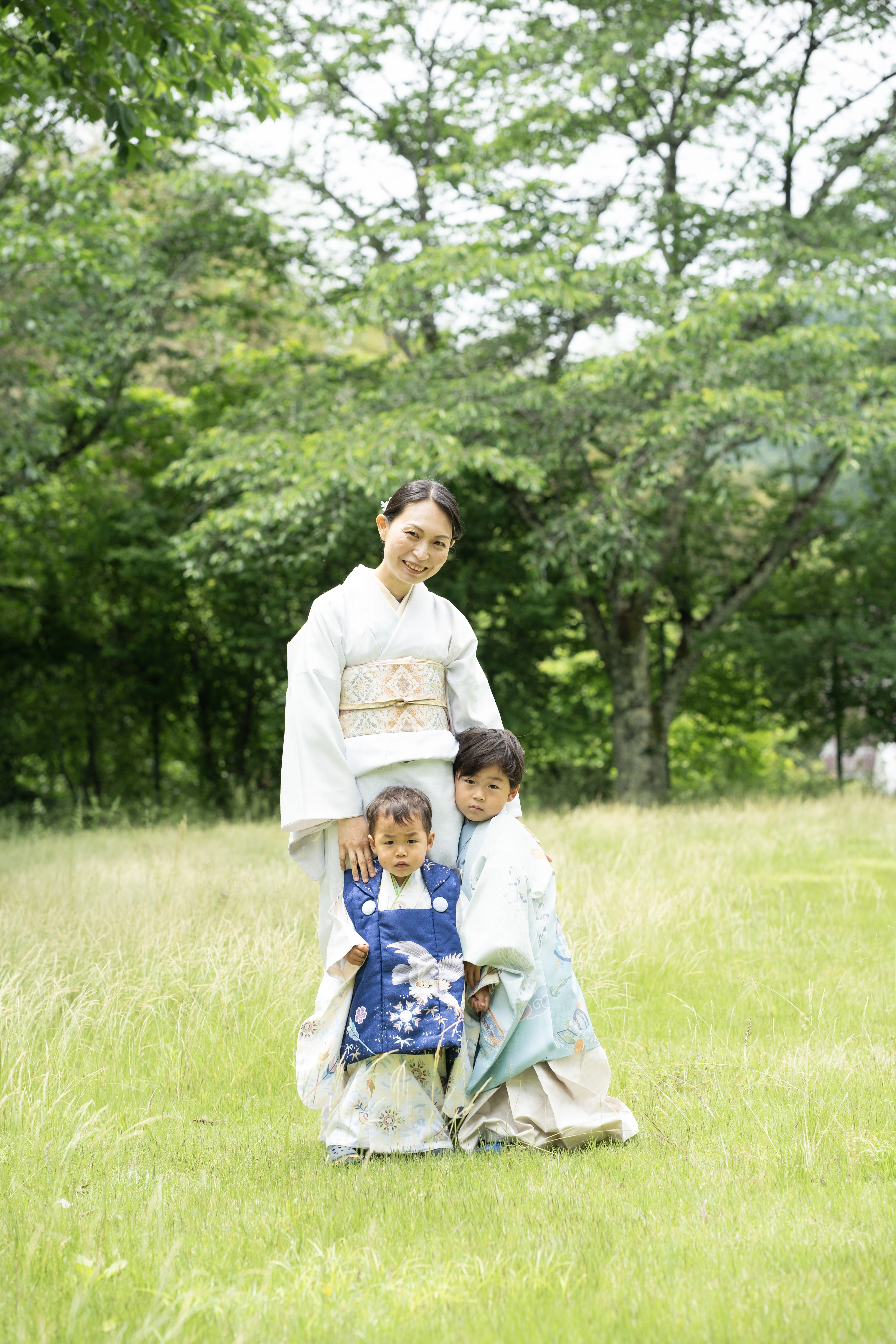 草原で元気いっぱいみんなで七五三! 緑と着物がとっても映えてます! 可愛いお写真ありがとうございました!