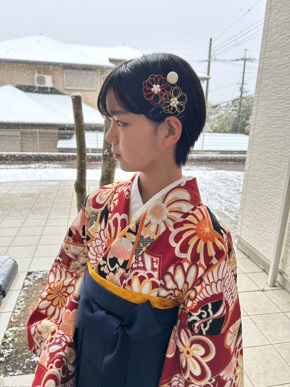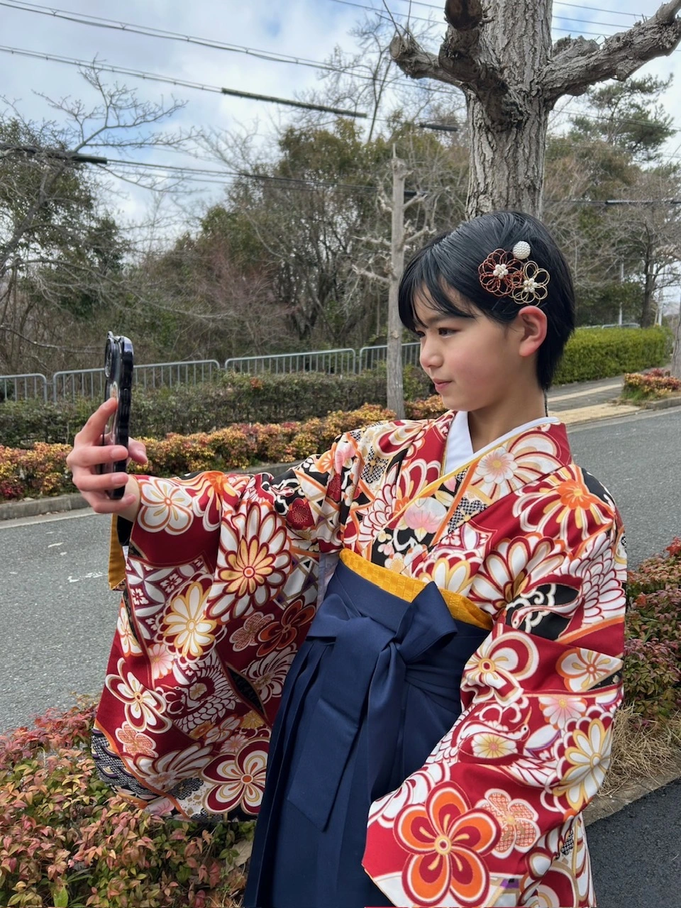 小学校卒業式での袴姿素敵です! 最近は女の子も男の子も袴姿の子が多くてとっても華やかです! 七五三から成人式まで着物を着る機会がないので、とってもいい記念になりますね! とっても可愛いお写真ありがとうございました!
