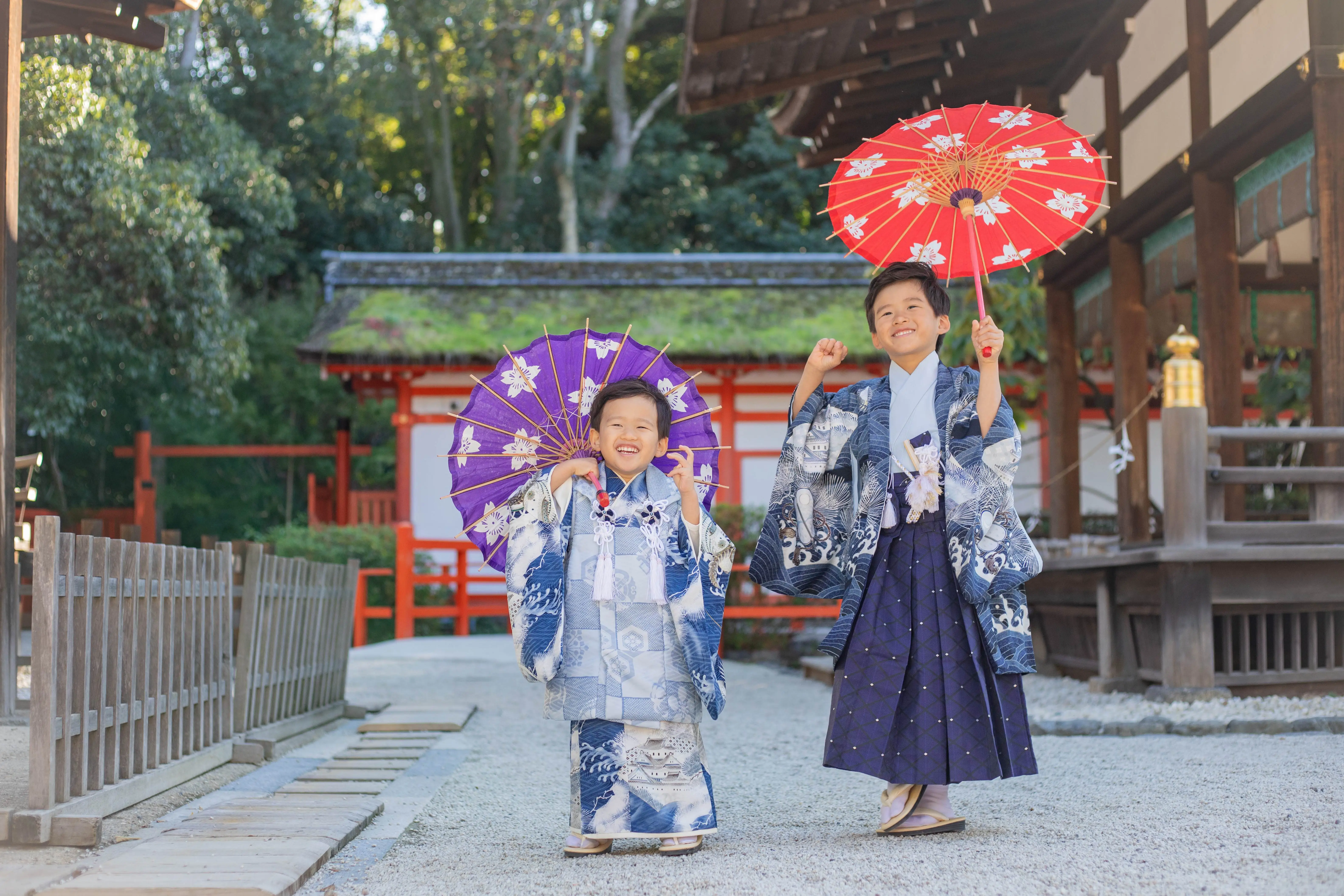 家族みんなでお着物とっても素敵です! 兄弟で華徒然のブルーの着物がとっても似合ってます! たくさんの笑顔いっぱいのお写真ありがとうございました!