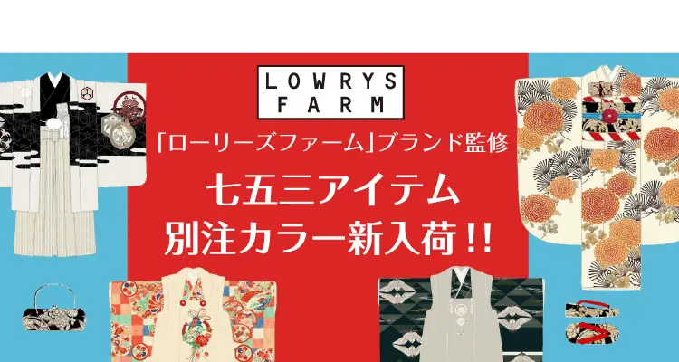 ローリーズファームブランドの七五三商品です。 LOWRYS FARM 3歳女の子(被布) 3歳男の子(被布) 3歳男の子(袴)簡単着付け 5歳男の子(袴)簡単着付け 7歳女の子(帯) 【LOWRYS FARM】の商品一覧はこちら